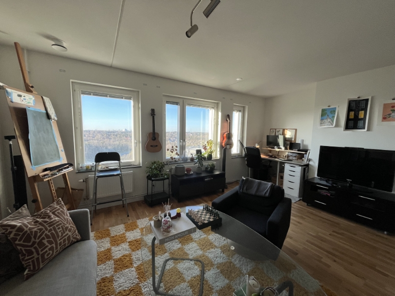 En ljus och härlig lägenhet belägen på 10:e våningen med vacker utsikt i två vädersträck. Välplanerad 2:a med stort kök, sovrum med garderobsförvaring och ett mycket rymligt vardagsrum. Ett stenkast bort ligger vackra Drevviken för sol och bad på sommaren eller en härlig skridskotur på vintern. Fina promenadstråk för dig som gillar att vara ute. Nära till både tunnelbana (10min till Farsta) och pendeltåg (15min till Farsta Strand). Det finns även en buss som går direkt utanför huset som tar dig till pendeltågsstation på 10 minuter. Lägenheten går att hyra upp till ett år, vi är väldigt måna om vem som hyr vår lägenhet då vi verkligen vill att den tas hand om. Eftersom lägenheten är byggd 2021, är den modern, ren och fräsch och förväntas återlämnas så. Tveka inte att höra av er för att boka in visning och/eller fika för att träffa oss (Ella och Otis).
