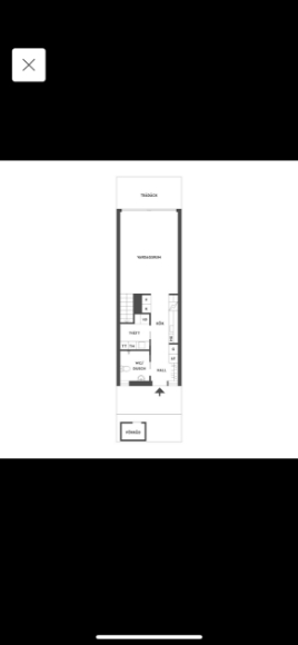 En marklägenhet med stora fönsterpartier som ger ett stilfullt intryck. Lägenheten är ljus och luftig. Två helkaklade badrum och tre sovrum på övre plan, med en stor balkong samt trädäck. Med vattenburen golvvärme i bägge planen ger det billiga driftkostnader.