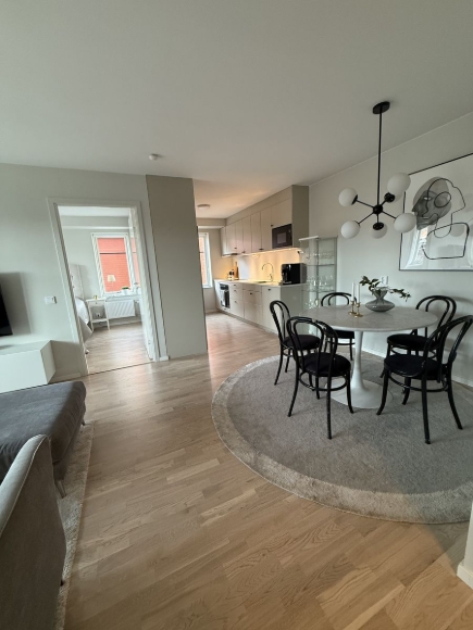 Jag hyr ut min nyproducerade och trivsamma trea på 60,4 kvm belägen i populära Umedalen. Lägenheten är modern och välplanerad med stilren inredning och hyrs ut möblerad under en längre period, gärna cirka ett år. Bostaden erbjuder ett bekvämt och funktionellt boende med inglasad balkong som ger extra utrymme och kan användas stora delar av året. Sovrummet är möblerat med en dubbelsäng, och det finns även ett extra rum med bäddsoffa och skrivbord, vilket passar perfekt som gästrum eller hemmakontor. Vardagsrummet är ljust och rymligt med stor soffa och TV. Det helkaklade badrummet är utrustat med både tvättmaskin och torktumlare. Köket är modernt och fullt utrustat med ugn, mikro, separat kyl och frys samt diskmaskin, vilket gör vardagen smidig och bekväm. För den som har bil finns parkeringsmöjligheter i området, och endast cirka 50 meter från bostaden ligger en busshållplats, vilket ger goda kommunikationer och enkel tillgång till resten av staden. En perfekt bostad för dig som söker ett modernt och bekvämt boende i ett lugnt och trevligt område.