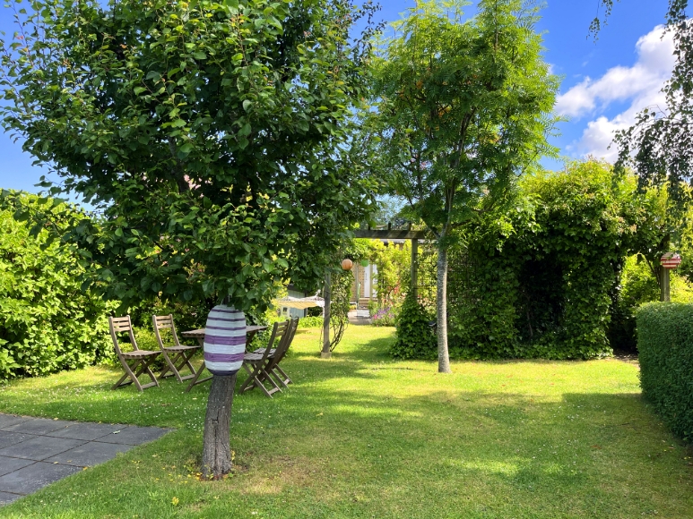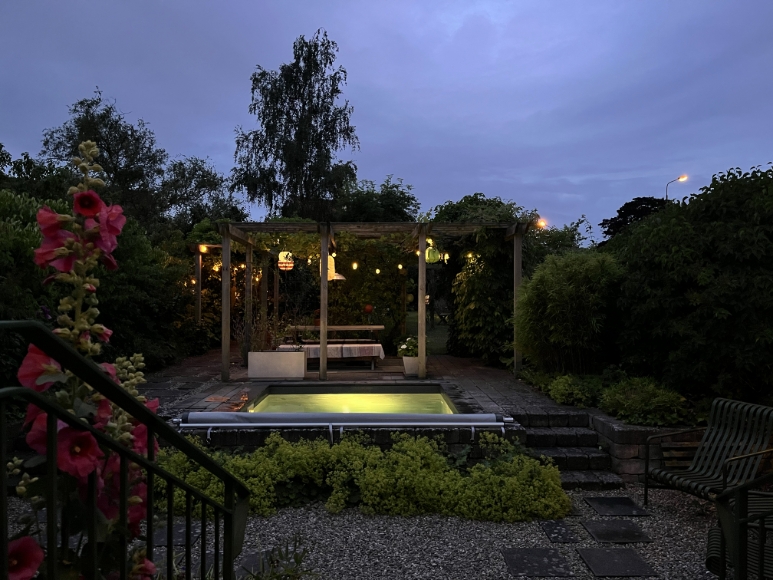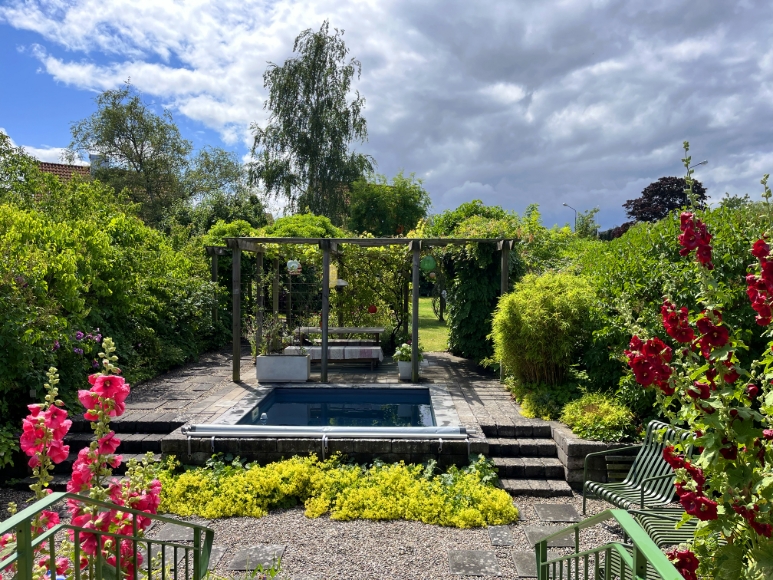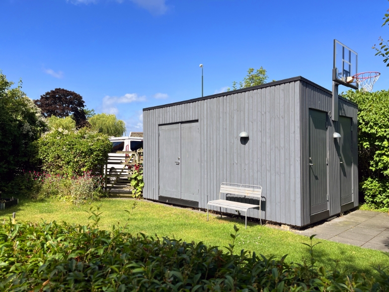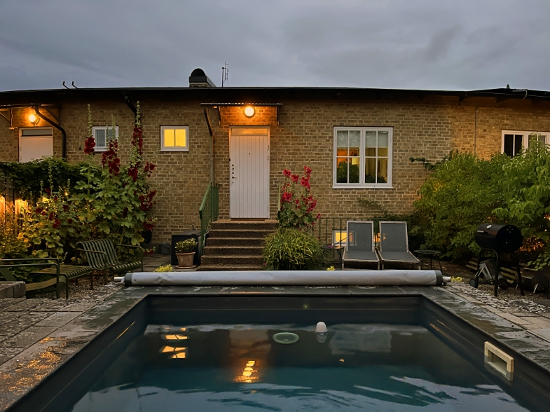 Magiskt radhus på hörntomt med stor välplanerad trädgård, liten mysig pool och isolerad friggebod. Öppen och genomgående planlösning med stort gemensamt rum, kök och badrum på markplan. Inrett källarplan med två sovrum, ett stort badrum med tvättmaskin och torktumlare och plats för förvaring. Markplanet har utsikt mot parken åt ena hållet och trädgården med pool precis utanför dörren åt andra hållet . Garageuppfart med gott om plats för två bilar. Friggeboden kan användas till förvaring eller varför inte ha det som tonårsrum?