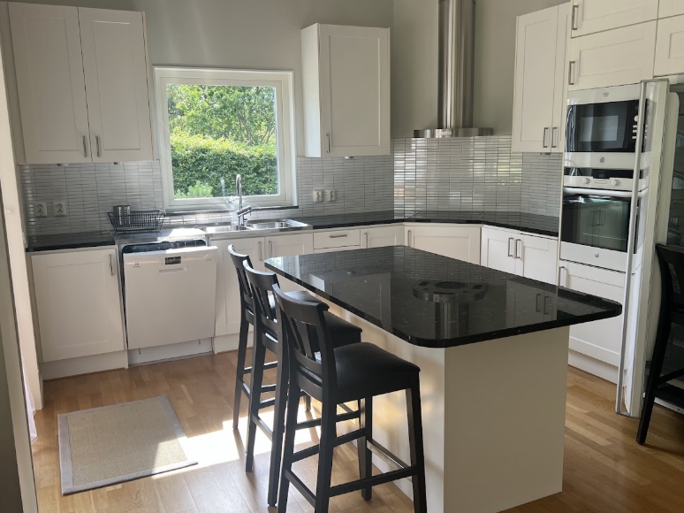 Välkommen till en trevlig etagevilla, byggt 2007 i charmig och naturskön miljö i Ingared! Här är det nära till skogar och sjön Sävelången med såväl båt- som badplats. Området är väldigt barnvänligt, dagis och skola upp till mellanstadiet finns inom kort avstånd. Du når lätt vårt hus från pendeltågstationen Norsesund genom en vacker promenad på 1.5 km. Resan från Göteborg till Norsesund tar 30 minuter och vidare till kaféstaden Alingsås 10 minuter. I Ingared centrum finns det en livsmedelsbutik med pizzeria. Och i anslutning till skolan finns ett bibliotek. Villan ligger högt upp på en kulle, med ett dubbelgarage nedanför den. Ingången nås genom trappor eller slänt. Väl inne i hallen ser man en del av vardagsrummet som ligger lite högre upp och har tillgång till toalett, kontor och grovkök till vänster samt master sovrum med klädkammare och kaklat badrum med dusch och toalett till höger. Sovrummet har dörröppning mot altan och är försedd med insektsnät. Mellanvåningen rymmer det stora vardagsrummet och köket i en öppen planlösning och har stora fönsterpartier med mycket ljusinsläpp samt utgångar till trädgården. Den övre hallen är synlig från vardagsrummet och nås genom en kort trappa. Den är möblerbar och leder till en balkong. Till höger finns det ett stort kaklat badrum med såväl dusch och badkar samt bastu och ett sovrum, och till vänster två sovrum och en klädkammare. Vi hoppas och önskar att ni trivs lika bra här som vår familj har gjort.