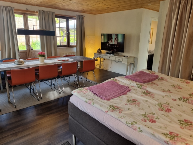 Charmig enplanssvilla på 3 rum och kök i mysig villa i äldre lugnt uppvuxet villaområde. Nära till kommunikationer köpcenter, natur, bad, förskola, skolor m.m. Beläget strax intill Skene/Kinna i Marks Kommun. Huset kommer prel att vara tuillgängligt och kunna hyras igen efter 1 september 2026 och då för en längre period. Hyrs ut fullt möblerat och bostaden passar för upp till 3 personer. (1 Dubbelsäng/kontinental (Master Bedroom), 1 säng 120 cm / Kontinental i separat rum + 1 säng 90 cm/Kontonental (sovalkov i stora vardagsrumsdelen. Göteborg 45 min Borås 30 min Varberg 40 min Landvetter 25 min