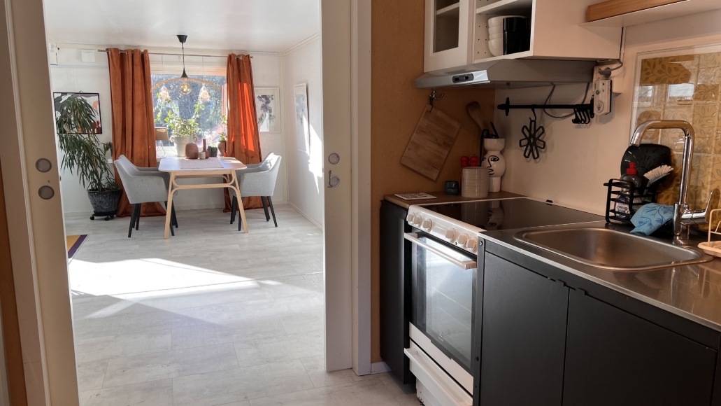 Uthyrningsdel på 52kvm med enkelt kök och badrum samt egen ingång, sovalkov med 140 säng och stor soffa. Varmluftspump vilket gör att värmen går att reglera. Enkelt kök och passande för två personer.