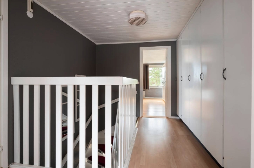 Lugnt och barnvänligt gavelradhus utan genomfartstrafik. Huset ligger längst in på återvändsgatan cirka 100 meter från en fotbollsplan och 200 meter från en förskola. Bostaden hyrs ut omöblerad. Det finns kök med modern maskinell utrustning, tvättstuga med tvättmaskin, torktumlare, badrum med separat dusch och hörnbadkar samt gäst-wc. Huset har balkong från vardagsrummet, trädäck vid huvudentrén och ytterligare uteplats på trädgårdssidan. Det finns två parkeringsplatser utanför huset samt en tredje plats i garagelänga. Fiber och Tele2 grundutbud ingår via samfälligheten. Området är mycket barnvänligt med närhet till lekplatser, skola, buss och natur.