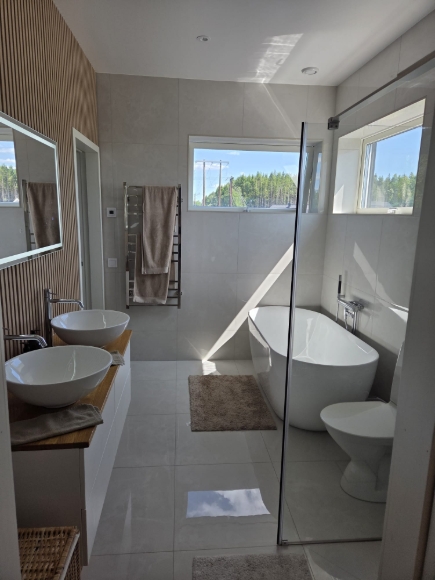 Vacker och nästan ny (endast 2 år gammal) villa med hög standard uthyres. Huset har 4 rymliga sovrum, 2 badrum varav ett eget badrum. Fullt utrustad tvättstuga, stort skafferi (walk-in), spis med både induktionshäll och gas, samt öppen spis. Två sällskapsrum, välskött och stor trädgård, AC och dubbelgarage och solpaneler. Vi flyttar på grund av nya jobbmöjligheter