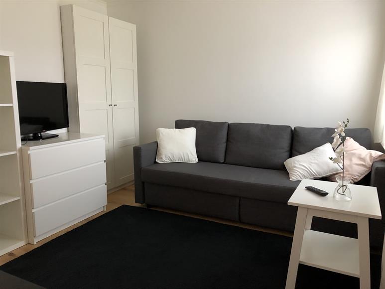 Mysig liten lägenhet i lugnt villaområde. Helt separat lägenhet. Rum med bäddsoffa (man sover löngs med o behöver inte fälla upp soffa) litet soffbord, matbord och stolar (mycket förvaring.) Kokvrå med induktionshäll, ugn, fläkt, kyl . Badrum med dusch o helt ny tvättmaskin. Kort promenad (8 min) till Norrviken station, 17 min till Odenplan. Ica o restauranger vid stationen. Nära natur och badsjö. Bara kvinnor, Only female!!!!