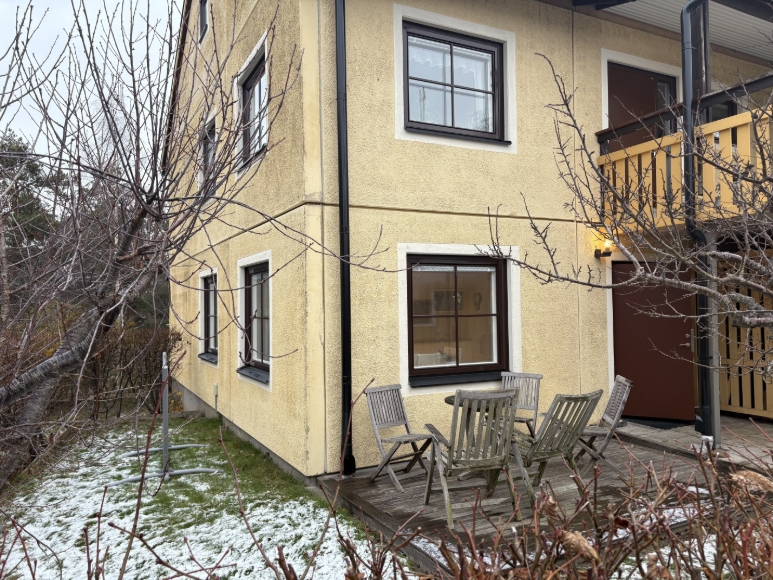 Radhuset ligger i Orminge i ett lugnt område. Parkeringsplats ingår. 7 min promenad till Orminge centrum. 5 min till Forum Nacka Till Slussen med Bil: 12 min Buss: 25 min