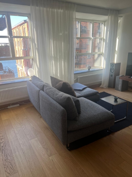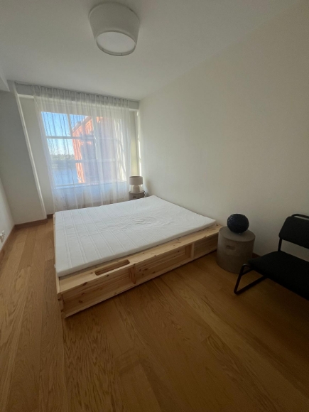 An open plan, spacious apartment with two large windows in the living room and bedroom and a view of the ocean and Djurgården. There is no traffic noise as the area is pedestrianised, but plenty of parking is available if needed. The ferry to Nybroplan is just 3 minutes walk away and this trip to the centre of Stockholm takes just 25 minutes. Slussen is a 10 minute bus journey. There is a supermarket 2 minutes walk away. Stylishly decorated, modern, large flat screen TV.