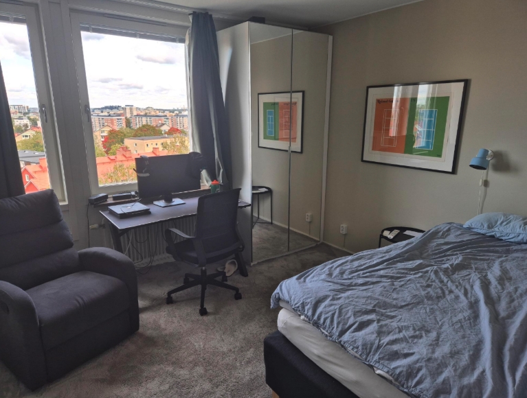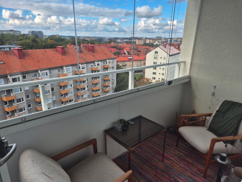 Område Västra Skogen är ett attraktivt område i Solna som kombinerar lugna bostadskvarter med närhet till city. Här bor du nära vackra grönområden som Karlbergs slottspark, Huvudstafältet och Pampas marina, perfekta för promenader, löprundor och rekreation. Området är tryggt, välskött och uppskattat av både barnfamiljer och yrkesverksamma som vill ha natur och stadsliv i kombination. Affärer & Service I närområdet finns allt man behöver för en bekväm vardag. Två stora matbutiker, bageri, caféer, gym och ett brett utbud av restauranger finns bara runt hörnet. På kort avstånd når du även Solna Centrum med ett komplett shoppingutbud, banker, apotek och annan service. Dessutom ligger Mall of Scandinavia och Friends Arena på några minuter med kollektivtrafik eller cykel. Kommunikationer Kommunikationerna är utmärkta. Tunnelbanans blå linje från Västra Skogen tar dig till T-Centralen på cirka 7 minuter. Flera busslinjer trafikerar området med smidiga förbindelser till Solna, Sundbyberg och innerstan. För den som kör bil finns nära anslutning till E4/E20 och Essingeleden, vilket gör det enkelt att snabbt ta sig vidare både norrut och söderut.