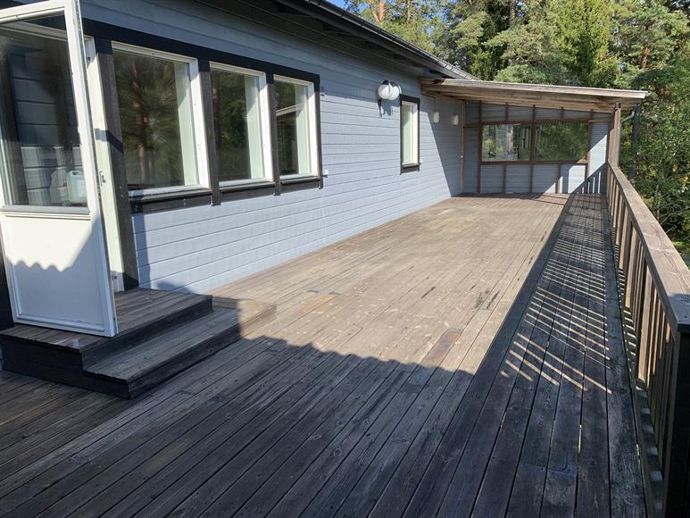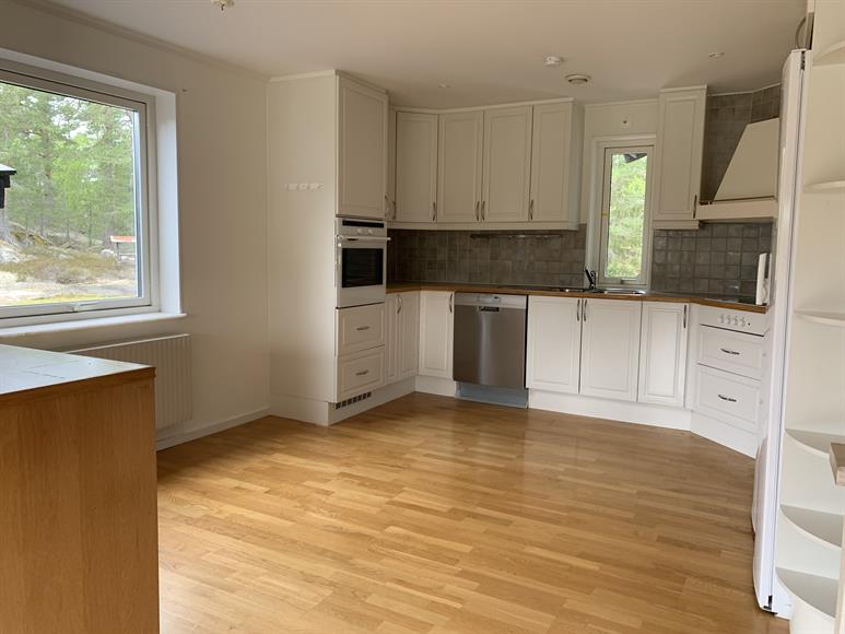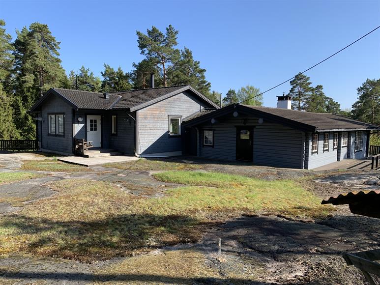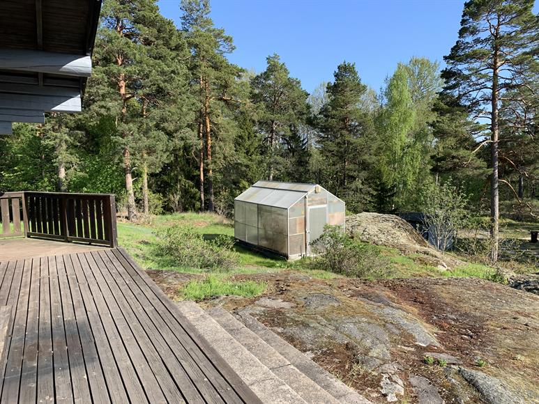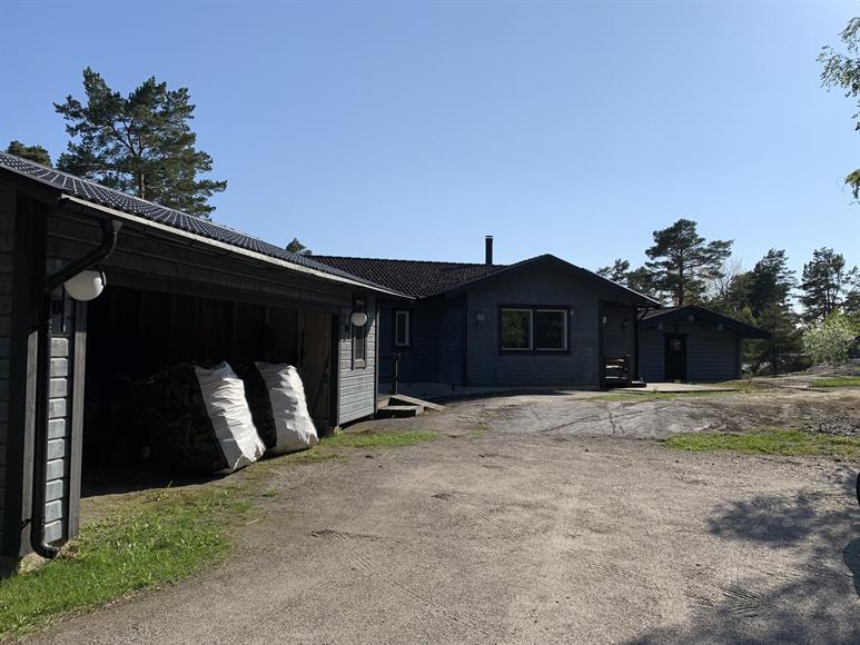 Bostad med två sammansatta hus i skärgårdsmiljö. En nyare del byggd på 90-talet samt ett charmigt Stockhus. Ligger inbäddad i naturen i lugnt och tyst område med närhet till vattnet och sandstrand. På tomten finns carport med plats för två bilar och förvaringsbodar samt växthus. Nya delen innehåller en rymlig hall, badrum, två sovrum. Öppen planlösning för tv-utrymme, kök med plats för matbord samt mycket rymligt allrum/vardagsrum med kamin och flera fönster och dörr ut mot stor altan i söderläge. I källaren finns utrymme för verkstad med egen ingång, tvättmaskin, mangel samt förvaringsutrymmen. I övergången mellan husen finns städskrubb och garderober. I Stockhuset finns en mindre hall och badrum med dusch. Två sovrum, varav ena med plats för dubbelsäng. Ett förvaringsrum med hyllsystem, kök med stort bord. Stort vardagsrum med öppen spis, grillplats samt kamin. Stort glasparti med utgång mot berget i söderläge.