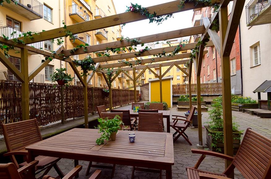 Penthouse Apartment in Södermalm – 3 Rooms and Kitchen The apartment is located in the vibrant Hornstull area, overlooking the lake and the beautiful nearby islands. The neighborhood is lively and colorful, with a wide selection of bars, restaurants, cafés, cultural amenities, and great shopping options. - Open floor plan between the kitchen and living room with a fantastic view of the water. The living room also includes a desk nook. - Bedroom facing the courtyard with a desk and a charming view over the rooftops. - Second bedroom with two beds (currently used as a children’s room, but the layout can be adjusted if needed). - Fully equipped kitchen with a dining area for six people. - Bathroom with bathtub. - Courtyard with seating areas and space for play. - Large (shared) rooftop terrace with seating areas and a stunning panoramic view over Stockholm. - Laundry room located on the ground floor of the building.
