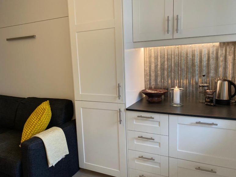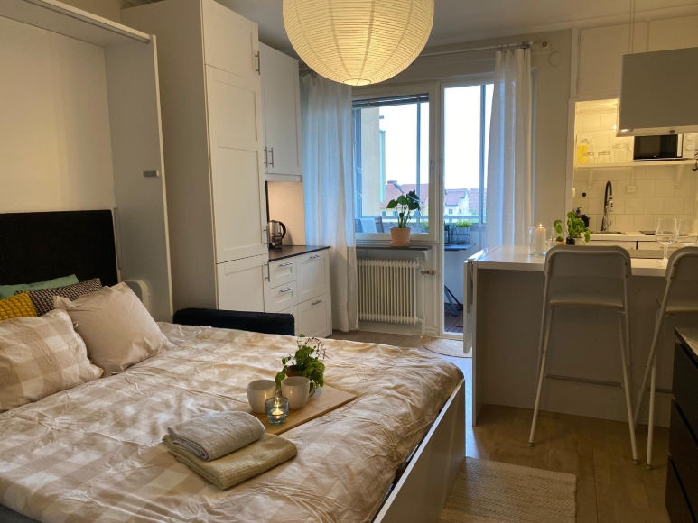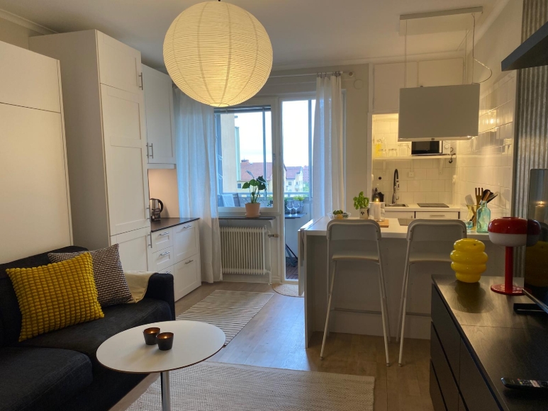 Kvadratsmart topprenoverad etta med inglasad balkong och milsvid utsikt. Nära Gullmarsplan och Årstaviken. I rummet finns ett unikt och påkostat sängskåp (inkl soffa) som både sparar plats och bidrar till rummets exklusiva känsla. Smart planerat kök, utrustat med generös köksö som fungerar både som matplats och förvaringslösning,. Helkaklat badrum med tvättmaskin.