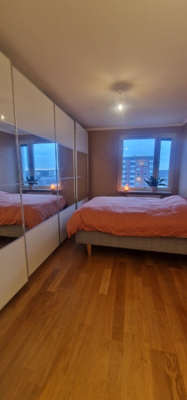 Bright and well-planned 3-room apartment in an elevated position with a nice view over Stockholm, located in a highly attractive yet quiet area in Sickla. The apartment features a newly renovated bathroom and an updated kitchen. Spacious living room with generous natural light and a glazed balcony, usable most of the year. The apartment is divided into two bedrooms, one larger and one smaller, ideal as a children’s room or home office, as well as a spacious hallway with a walk-in closet. The building offers access to a bicycle storage room and shared laundry facilities. Heated garage parking space included. The building is located opposite Sickla Central, with buses reaching Slussen in approximately 7 minutes, and direct tram (Tvärbanan) connection towards Solna. Across the street is Sickla Shopping Quarter, offering a cinema, library, a wide selection of cafés, restaurants and bakeries, gyms, pharmacy, liquor store, and several large grocery stores. For those who enjoy nature and outdoor activities, Sickla Beach, Hammarby Hill and Nacka Nature Reserve are all within walking distance, and Södermalm is just a short bike ride away. Ljus och välplanerad 3:a i högt läge med fin utsikt över Stockholm, belägen i ett mycket attraktivt men samtidigt lugnt område i Sickla. Lägenheten har nyrenoverat badrum samt ett uppfräschat kök. Rymligt vardagsrum med generöst ljusinsläpp och inglasad balkong som kan användas stora delar av året. Bostaden är uppdelat i två sovrum, ett större och ett mindre som passar utmärkt som barnrum eller hemmakontor, samt en rymlig hall med walk-in-closet. I huset finns tillgång till cykelrum och gemensam tvättstuga. Uppvärmd garageplats ingår. Huset är beläget mitt emot Sickla Central, där bussförbindelser tar dig till Slussen på cirka 7 minuter, samt tvärbana med direktförbindelse mot Solna. Tvärs över gatan ligger Sickla Köpkvarter med biograf, bibliotek, stort utbud av caféer, restauranger och bagerier, gym, apotek, systembolag samt flera stora mataffärer. För den som uppskattar natur och aktivitet ligger Sickla strand, Hammarbybacken och Nackareservatet på kort promenadavstånd, och Södermalm är en kort cykeltur bort.