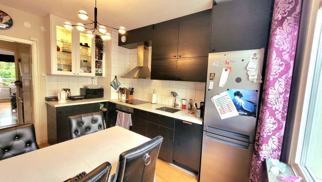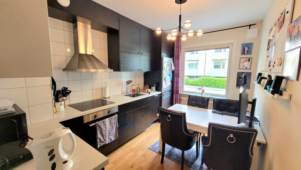 Fin etta, granne med trevliga restauranger, livsmedelsbutiker och grönområden. God kommunikation till centrum som man kommer till på under 10 min med spårvagn