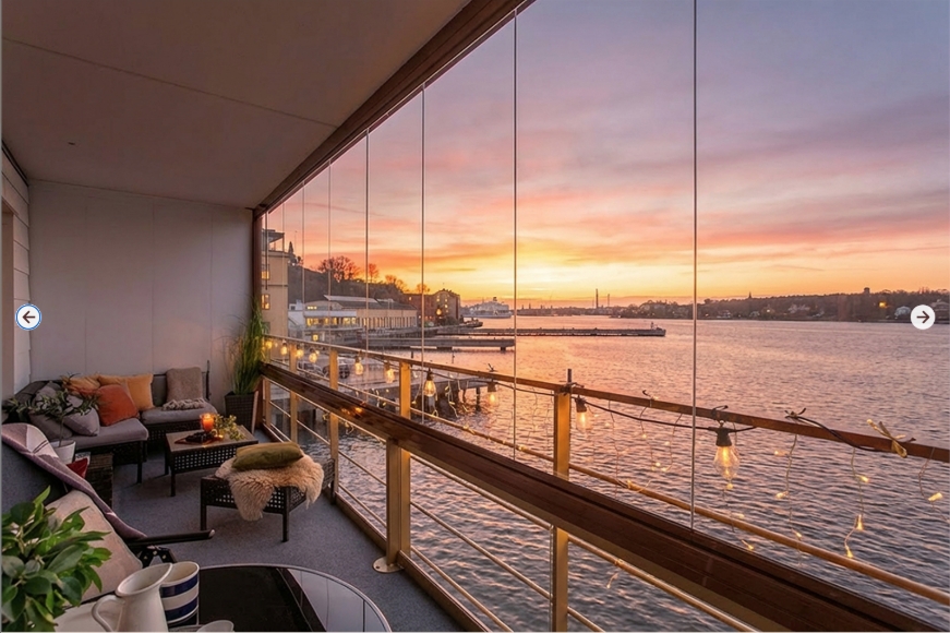 2:a i mycket exklusivt läge på vattnet 180 grader vínkel mot Stockholms hamninlopp mittemot Djurgården. Utsikt mot Gamla stan, Djurgården och Stockholms hamninlopp 2 stora balkonger varav den ena inglasad ca 25 kvm totalt Balkongerna är i norr och söderläge. På knappt en minut tar du dig till båt som går till Nybroviken (18 min resa)SL linje 80 3 minuters promenad till buss som går till Slussen ca 10 min resa Tvättmaskin, torktumlare finns i duschrummet i lägenheten Bredband och vatten ingår Induktionshäll, diskmaskin, micro, kyl och frys finns Matavfallskvarn finns och behöver inte tömmas. Parkering finns att hyra