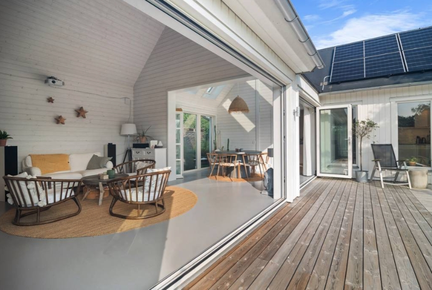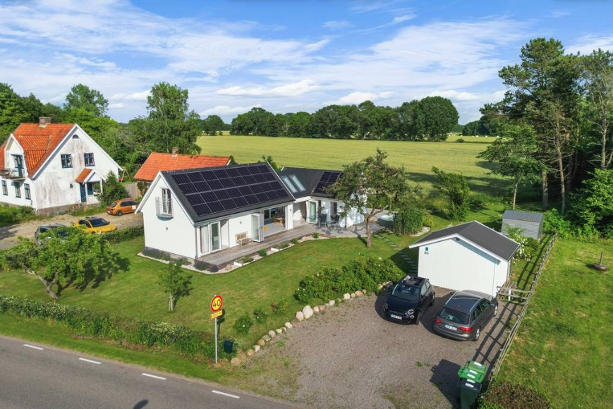 Fantastiska strandnära villa i Farhult! Med sin natur och strandnära omgivning och en fantastisk utsikt utöver nejden är detta verkligen en exklusiv pärla. Bostaden supertilltalande kvadratmeter ett allrum, ljust och luftigt! En trivsam matsal, ett fräsch kök och två badrum. Två rymliga sovrum samt två sovloft, vilket ger gott om utrymme för hela familjen att njuta av den ljusa och luftiga atmosfären. Köket är både stilfullt och praktiskt, och ger dig en perfekt plats att laga läckra måltider medan du njuter av den underbara utsikten över åkrarna. Bostaden har även en imponerande takhöjd på fem meter i vardagsrummet, vilket ger en känsla av rymd och elegans. De matta betonggolven och den liggande panelen ger en modern touch och skapar en stilren atmosfär. Ett stort trädäck som löper runt nästan hela bostaden. Utgångar från flera rum skapar en samhörighet mellan inne och utemiljö. I den välgenomtänkta trädgården kan du njuta av solen eller skuggan och koppla av i det härliga utespaet, eller ladda din elbil med hjälp av den praktiska elbilsladdaren. Med solcellerna är du nästintill självhushållande av el och bidrar även till klimatet. Förråd och uppställningsplats för bilar. Farhultsbaden har en fin långgrund sandstrand för hela familjen. Kullabygdens mest barnvänliga strand. Här finns bra parkeringsmöjligheter, lekplats, grillplats, utegym och tillgänglighetsanpassad toalettbyggnad med utedusch. Med sitt nordvästläge har badplatsen kvällssol på sommaren vilket gör den till en favorit för långa sena eftermiddagsbad. Bussen stannar 700 meter från stranden vid busshållplats Farhultsbaden och därifrån har man goda kommunikationer med buss till Helsingborg, Ängelholm, Höganäs och Jonstorp. Med bil når man smidigt väg 112 och väg 111. I byn finns förskola, grundskola finns både i Höganäs och Jonstorp, där även närmsta mataffärer ligger.