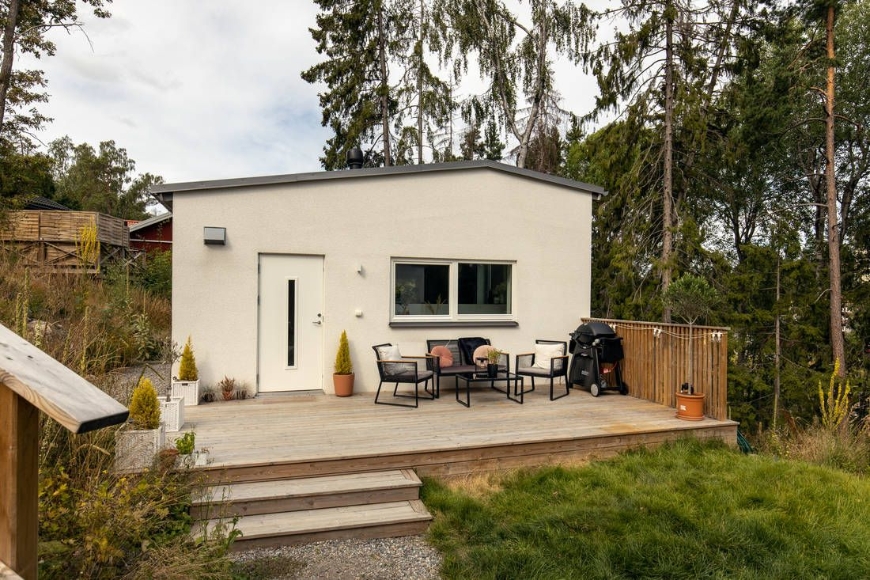 Fräsch och modern tvåplansvilla om ca 60 kvm uthyres långsiktigt i lugna och attraktiva Eriksvik. Villan är byggd 2018 och ligger privat och insynsskyddat med egen gräsmatta, på en avskild del av tomten. Planlösning: Öppen planlösning med kök och vardagsrum Sovrum med plats för dubbelsäng samt utgång till uteplats Extra rum Tvättstuga, förråd och klädkammare Hall med skjutdörrsgarderober Utemiljö: Stor solig altan (sol från morgon till eftermiddag) Egen gräsmatta Lugnt och rofyllt läge Möblering: Uthyres delvis möblerad med bl.a. sängar, skrivbord, matbord, garderob och belysning. Övrigt: Uthyres långsiktigt Driftkostnader: Vatten ingår i hyran. El tillkommer och betalas av hyresgästen.