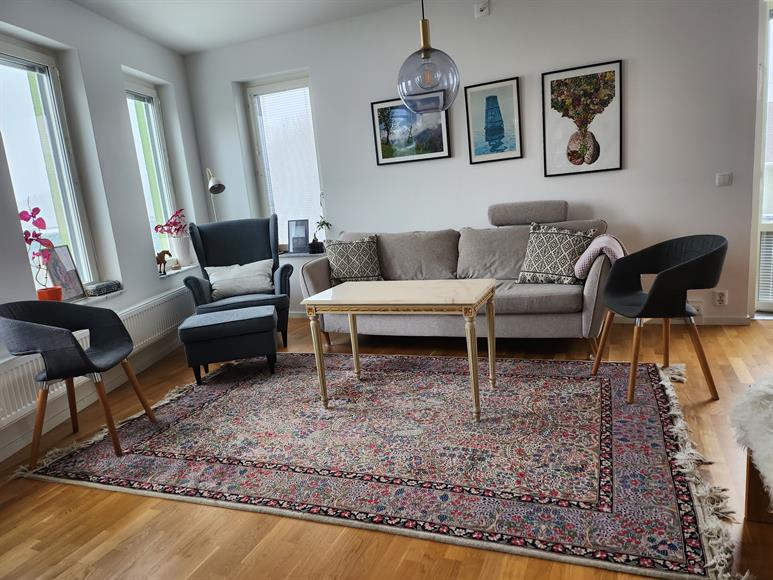 En modern nyproducerad 2:a med ljusinsläpp från morgon till kvällen. Det finns en balkong i söderläge med plats för minst 4 personer. Lägenheten är möblerad med nästan allt du skulle kunna behöva. Det finns gott om förvaringsutrymme. Nära till city Till city tar du dig lätt. Bussen passerar runt hörnet och från Ulriksdal tar det bara 11 minuter med pendeltåget. Till tunnelbanan är det mindre än en kilometer. Dit går det buss en gång i kvarten. Nära till natur Stora delar av Järvastaden gränsar mot Igelbäckens naturreservat. Här finns ett rikt djurliv, vandringsleder, ridvägar och motionsspår. Efter bara en kort promenad genom naturreservatet kommer du till Överjärva gård, ett omtyckt utflyktsmål för hela familjen. Här finns kulturhistoriska, byggnader, gårdsbutiker, café, djur och ett statarmuseum.