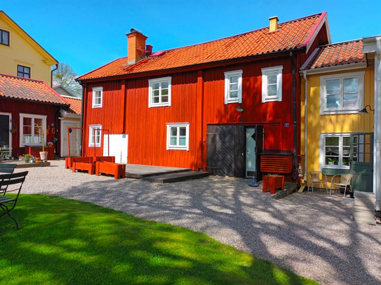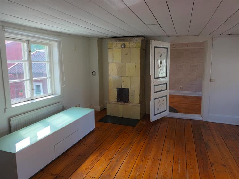 Lägenhet/radhus i tvåplan i K-märkt Bostadsrättsförening med uteplats-. 1700 talsfastighet. Ligger i centrala Torshälla. Gemensam Bastu och tvättstuga och gäst lägenhet. Goda bussförbindelser, till Eskilstuna.Uthyres ett år med möjlig förlängning. Det finns två kaminer i huset som man kan elda i. Det finns tillgång till en bastu i fastigheten. Det finns även odlingsmöjligheter och en gäststuga i föreningen.