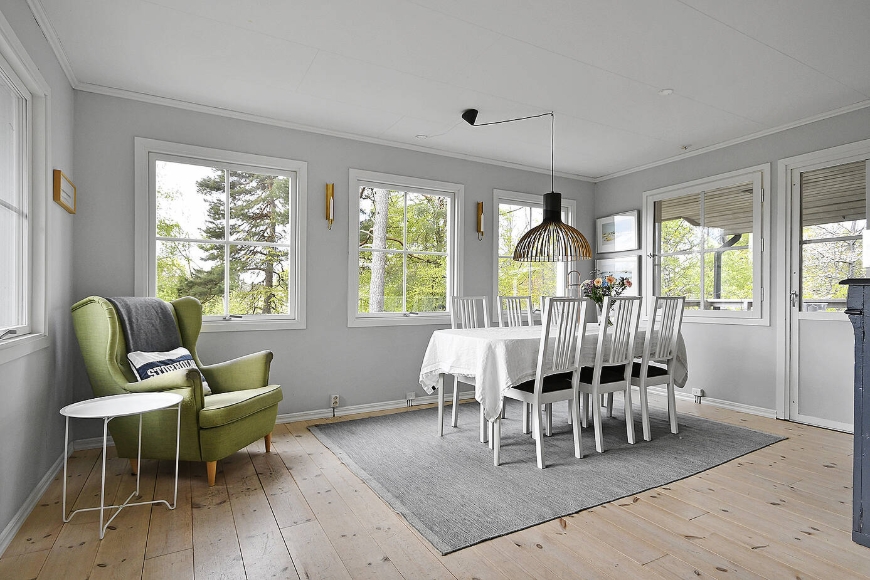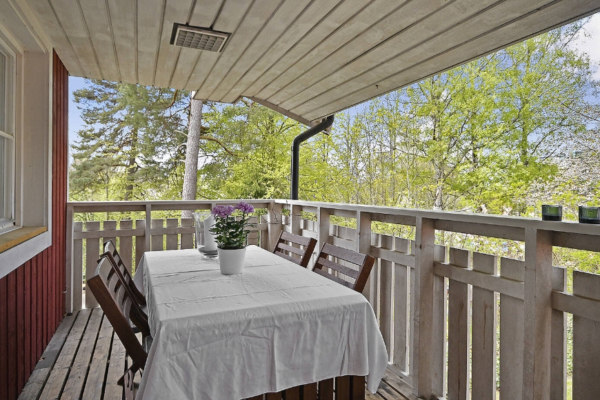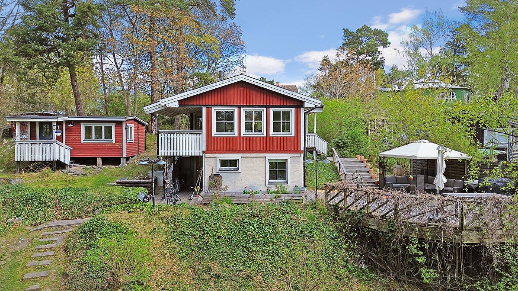 Invid slottet på en stor uppvuxen tomt ligger detta synnerligen trivsamma och rejäla hus om totalt drygt 100 kvm byggt 1982. Entréplan med härlig storstuga/glasveranda, kök och vardagsrumsdel med öppen spis, kaklat badrum. Souterrängvåning med två sovrum, tvättstuga och generöst med förvaring. Huset värms upp med luftvärmepump samt el-element. Det finns även en braskamin. På tomten finns också en fint gästhus med bäddsoffa. Reguljär båttrafik i SL:s regi året om, fiber finns indraget. Båtplats vid MorAnnas brygga och bryggplats på Ön ingår!