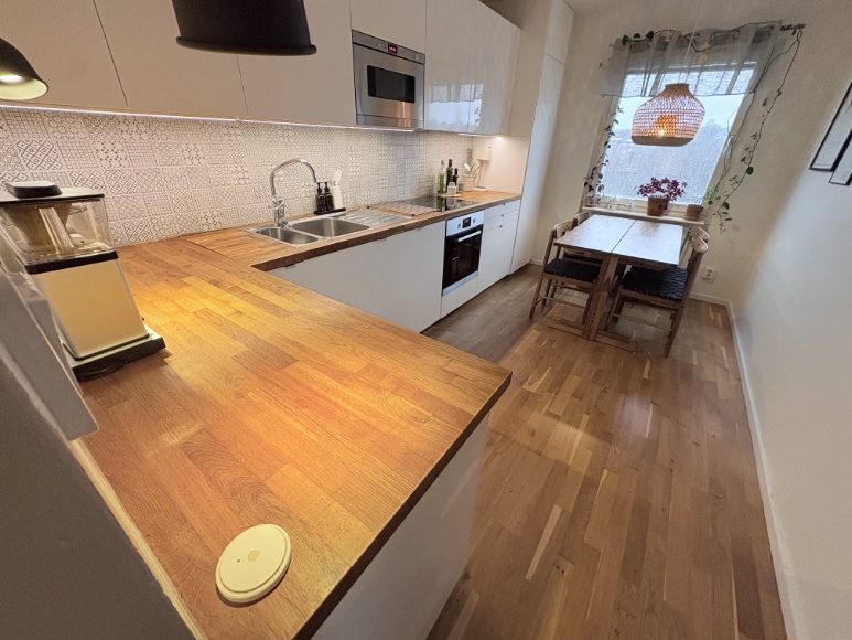 Jag hyr ut min fina, ljusa och välplanerade trea om 69 kvm med mysigt inredd balkong, belägen på Ekudden i Nacka. Lägenheten är nymålad och har genomgående parkettgolv i samtliga rum. Lägenheten har även ett förråd med hyllplan och plats för städmaterial. Området är barnvänligt och tryggt, med närhet till Järla sjö, fina promenadstråk, mysiga badplatser och en lugn boendemiljö att trivas i. Läge: • Natur: Närhet till Nyckelvikens och Hellas naturreservat • Shopping och service: Nacka Forum och Sickla Köpkvarter samt flera större matbutiker på bekvämt avstånd • Kommunikationer: Bussar samt tvärbana i Sickla med smidig förbindelse till city Uthyres delvis möblerad: • Större möbler som ingår: Dubbelsäng med sänggavel, soffa, soffbord, sittpuff, vissa barnmöbler enligt överenskommelse, bokhylla med böcker i vardagsrummet, viss belysning/taklampor, matbord, hallmöbler och skohylla. TV kan lämnas om så önskas. Eventuellt kan även vissa tavlor och inredningsdetaljer ingå. • Goda förvaringsmöjligheter i hall och sovrum • Stort kök för att vara en trea, med inbyggd mikro, diskmaskin, kyl och frys samt rymligt skafferi • Ingår: Wifi och tv-kanaler Övrigt: • Hyresgästen tecknar egen hemförsäkring • Hyresgästen tecknar eget elavtal • Parkeringsplats finns att hyra vid behov Krav på hyresgästen: • Rök- och djurfri • Skötsam, varsam och ordningsam. Inga fester • Godkännande från bostadsrättsföreningen krävs • Fast anställning samt inga betalningsanmärkningar eller skulder. Flexibel med datum för inflyttning