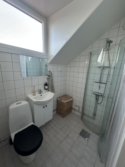En underbar, ljus och rymlig renoverad vinds 1:a om 32 kvm golvyta med arbetskök och god förvaring. Nära bra kommunikationer, som tar dig till Alvik, Sundbyberg och Spånga. Promenadavstånd till Bromma blocks. Hyr min charmiga och personliga vindsvåning med genomgående ljus nylagd ekparkett. Lägenheten har en vindsvånings karakteristiska stil med snedtak och välplanerade kvadratmeter. Känslan är ljus och inbjudande, detta är ett hem för dig som har krav på ditt boende. Allt från fönster på helt rätt ställen till den franska balkongen med dubbeldörrar samt grön avkopplande utsikt. Nyrenoverat kök, med fräscha vitvaror och ett fint ljusinsläpp från det höga fönstret och utsikt till träden och himlen. Det stora rummet är rymligt och lättmöblerat. Här finner du även sängen som är 120cm. I rummets alkov så nyttjas det för klädkammare, där denna sväljer mycket. Lägenheten är full möblerad med soffa, matbord med tillhörande stolar, tv och allt som kan tänkas önskas. Det fräscha ljust kaklade badrummet med klinkergolv erbjuder dusch med utsikt mot himlen genom det högt satta fönstret. Föreningens stora trädgård har en trivsam uteplats, äppleträd och på gården finns även den EGNA parkeringsplatsen som ingår i lägenheten.