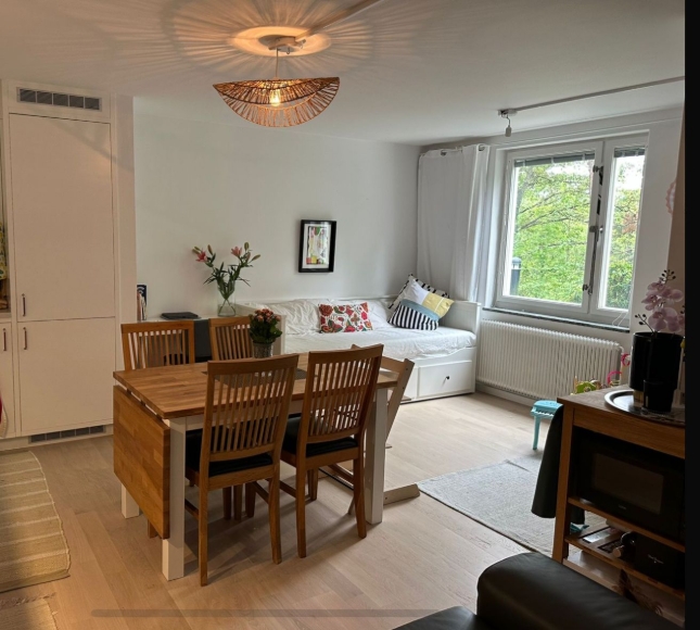 Denna välplanerade lägenhet har ett unikt och ostört läge med vacker utsikt över grönska och ängar. Läget, med Centralparkens grönska precis intill, fångar solen från tidig eftermiddag till solnedgången. Tillsammans med de omgivande buskarna och träden skapar detta ett härligt ljus och en radhusliknande känsla. Bostaden är om- och nybyggd 2019 i föreningens regi. Under vår och sommar förlängs bostaden på ett naturligt sätt genom den fina, stenlagda uteplatsen direkt utanför entrén, som erbjuder en självklar plats att avsluta sommardagarna på. Kök och vardagsrum i öppen planlösning, ett rofyllt sovrum och ett stort och toppfräscht badrum. Hög standard och stilsäkra material i form av vitpigmenterade ekgolv, terrazzosten i hall och kök samt ett snyggt Marbodalkök. Fastigheten byggdes på 50-talet. Här erbjuds ett bekvämt boende med flera uppskattade gemensamma faciliteter såsom tvättstuga, bastu, välutrustade motionsrum och aktivitetsrum. Dessa finns i lägenhetens omedelbara närhet. Lägenheten inkluderar en tillhörande parkeringsplats. Kabel-TV och bredband levereras via Tele2. Fastigheten byggdes på 1950-talet. I närheten finns Näsby Parks Centrum med bland annat livsmedelsbutik, restauranger och apotek, samt Roslagsbanan. Båda ligger en fyra minuters promenad från bostaden. Tågresan till stan (Östra station) tar 20 minuter med stopp vid Danderyds sjukhus och Stockholms universitet. Lägenheten hyrs ut då ägarna tillfälligt bosätter sig utomlands.