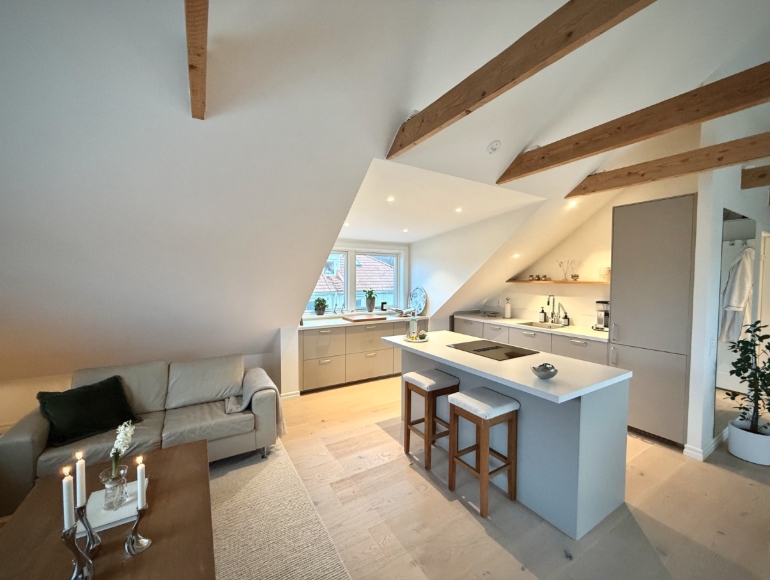 Lägenheten är en charmig vindsvåning med klassiska detaljer där träinslag och öppna väggar skapar en unik och varm karaktär. Bostaden är totalrenoverad med hög standard och erbjuder ett stilrent och exklusivt boende där äldre charm möter modern komfort. Bostaden är belägen i ett lugnt och omtyckt område i östra Göteborg med närhet till både grönområden och stadsliv. Här finns ett trivsamt närområde med mataffärer, caféer, restauranger och annan service inom bekvämt avstånd, vilket gör vardagen enkel och smidig. Kommunikationerna är mycket goda med spårvagn och buss i närheten som snabbt tar dig in till Göteborg centrum och övriga delar av staden.