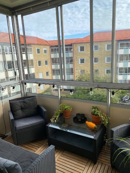 Mysig tvåa som vetter mot öst, lägenheten har ett stort vardagsrum som leder ut till en stor inglasad balkong med morgonsol. Här finns ett ljust kök med full maskinell utrustning och plats för matbord. Sovrummet erbjuder plats för en stor dubbelsäng och det finns rymlig förvaring. Ett fräscht badrum (renoverat 2020) med dusch och kombinerad tvätt- och torkmaskin. Rymlig hall med en extra klädkammare. Trivsam inhägnad innergård med grillplatser och cykelparkering. Cykelparkering erbjuds även i källare där den gemensamma tvättstugan också är belägen. Parkeringsplats som ingår i hyran finns i källargaraget, och boendeparkering utanför huset finns att tillgå mot en mindre avgift. I närområdet finns flera bra matbutiker och matställen och vill du utöka ditt utbud så ligger Nobeltorget, Möllevångstorget och Folkets Park på ett bekvämt avstånd. Vill du in till Malmö City eller Centralstationen tar det dig ca 10 min med buss och busshållplatsen angränsar till bostadsrättsföreningen. Cozy two-room apartment facing east, featuring a large living room leading out to a spacious glass-enclosed balcony with morning sun. The apartment includes a bright kitchen with full appliances and room for a dining table. The bedroom offers space for a large double bed and ample storage. A fresh bathroom (renovated in 2020) with shower and combined washer-dryer. Spacious hallway with an additional walk-in closet. Pleasant enclosed courtyard with barbecue areas and bicycle parking. Bicycle parking is also available in the basement where the communal laundry room is located. A parking space included in the rent is available in the underground garage, and residential parking outside the house is available for a small fee. In the vicinity, there are several good grocery stores and eateries, and if you want to expand your options, Nobeltorget, Möllevångstorget, and Folkets Park are within convenient distance. If you wish to go to Malmö City or the Central Station, it takes about 10 minutes by bus, and the bus stop is adjacent to the housing association.
