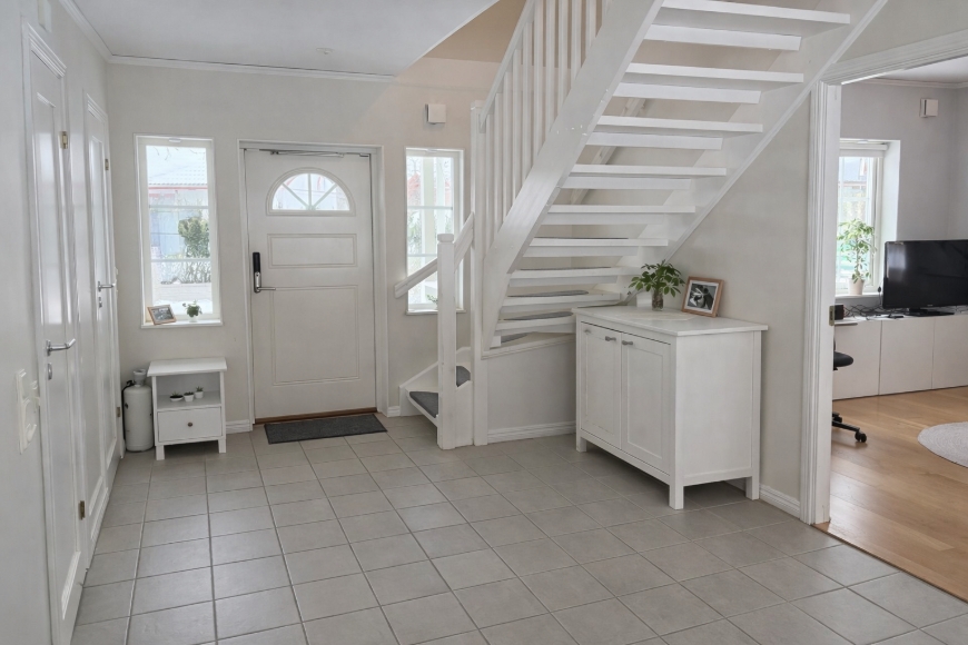 Välkommen till denna trivsamma och välplanerade villa från 2005 i attraktiva Trosa. Villan är belägen på lugn återvändsgata med generös tomt och skogen som rogivande baksida. På bekvämt gångavstånd når du både charmiga Trosa centrum med restauranger, hamn och små affärer, samtidigt som du har närhet till natursköna stråk längs Sörmlandsleden och Östersjön. Husets öppna planlösning skapar en luftig och social atmosfär där den öppna spisen blir en naturlig samlingspunkt. På entréplanet finns även ett flexibelt rum som passar lika bra som sovrum, gästrum eller hemmakontor, en praktisk klädkammare, tvättstuga med nya vitvaror samt ett helkaklat badrum med dusch. Övre plan rymmer ett trevligt allrum, tre sovrum samt ett generöst badrum utrustat med både dusch och badkar. Ett av sovrummen erbjuder dessutom en uppskattad walk-in-closet med fönster. Den stora trädgården erbjuder gott om plats för lek, odling och umgänge. Fullt möblerad uteplats med grill samt en större studsmatta finns att tillgå. På husets kortsida finns en kombinerad carport och förråd som ger praktiska förvaringsmöjligheter. Huset är utrustat med elbilsladdare samt solceller med tillhörande batterilagring som bidrar till lägre driftkostnader.