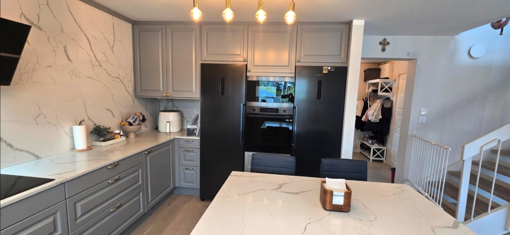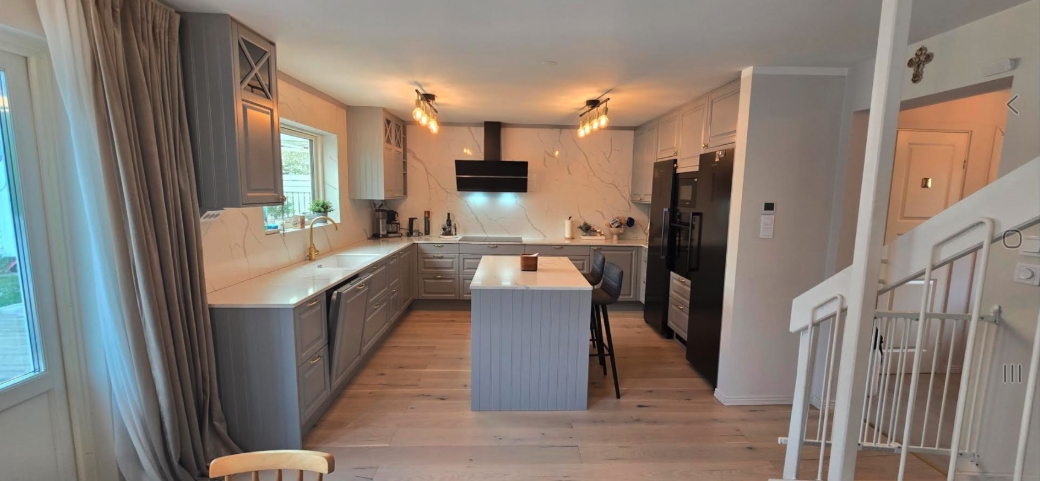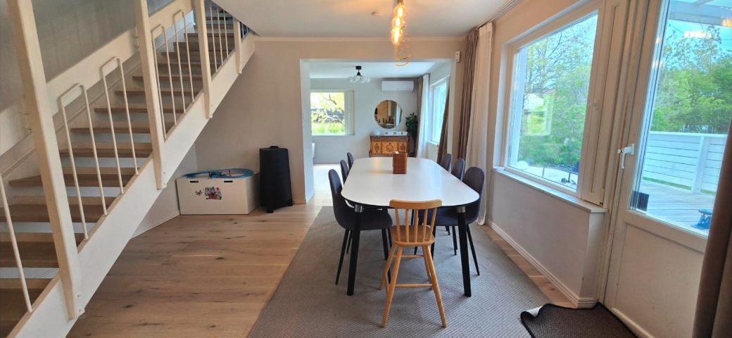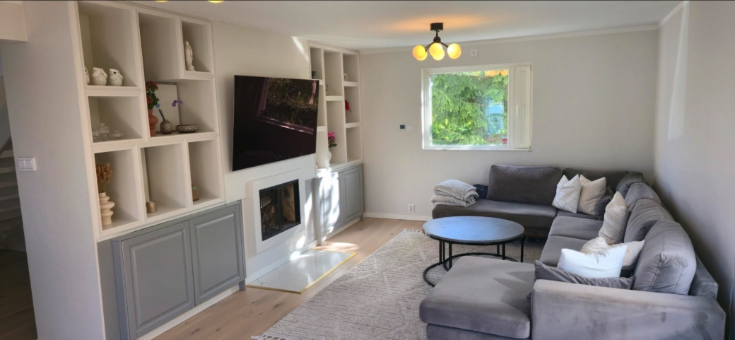 Välkommen till ett trivsamt och familjevänligt område med närhet till både natur och stadens bekvämligheter. Här bor du i en lugn bostadsidyll med gångavstånd till skolor, förskolor och serviceutbud i centrum. Goda kommunikationer gör det enkelt att ta sig in till Stockholm, samtidigt som området erbjuder grönområden och rekreationsmöjligheter runt knuten. Fräsch nyrenoverad villa i bostadsidyll nära skolor, centrum och kommunikation. Fastigheten erbjuder en generös tomt om nästan 1000 kvm samt en stor terrass om cirka 80 kvm – perfekt för umgänge och avkoppling. Invändigt möts du av ett modernt, nyrenoverat kök med stilrena marmorkompositbänkar och matchande väggar. På undervåningen finns toalett med dusch samt vattenburen golvvärme för extra komfort. Övervåningen rymmer en rymlig toalett med dusch och dubbla handfat. Till huset hör även ett stort garage utrustat med vatten och avlopp. Bostaden hyrs ut fullt möblerad – allt som syns på bilderna ingår, såsom sängar, soffor, bord, stolar, TV-apparater, byråer med mera.