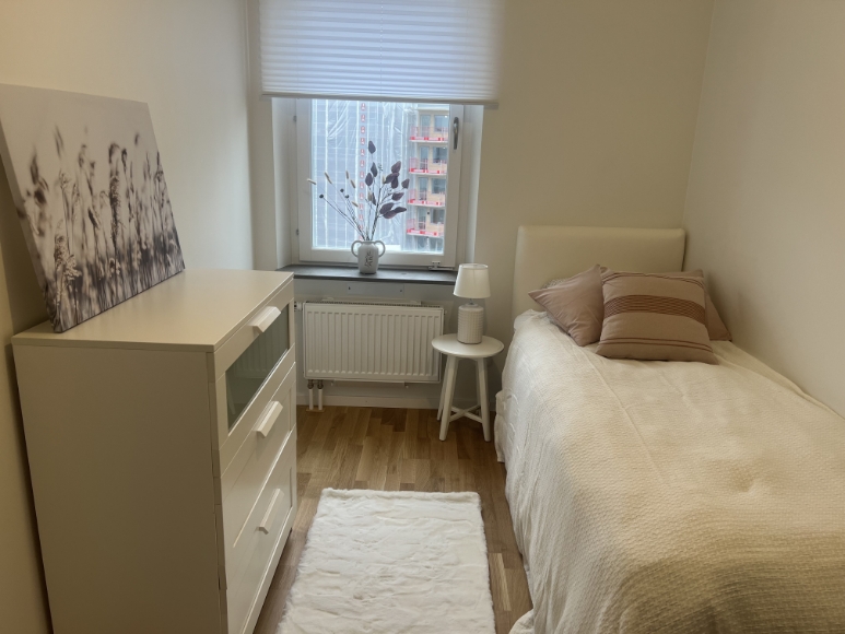 Nyproduktion i Barkarby staden. Våning 4 av 5. Stor balkong mot innergård med söderläge (SOL). Gångavstånd till Barkarby outlet. 10 min till pendeltåg 5 min till bussar, Ica Maxi m.m. Nära till restauranger, lekparker. 3 rok med öppen, ljus och fräch som är tillgänglig för uthyrning 1/3 2026 - tillsvidare. Optimalt läge centralt i Barkabystaden Järfälla med endast 10 min gångavstånd till närmsta pendeltågsstation Barkarby. Goda kommunikationsförbindelder med buss (hållplats: Stora torget Järfälla) och tåg och tunnelbana in till bla Stockholm City Det är ett tryggt och lugnt område med närhet till Ica Maxi (500m), apotek etc. Gångavstånd till Barkarby outlet och Ikea. I närområdet finns även ett stort utbud av trevliga resturanger. Lägenheten hyrs ut FULL möblerad. I lägenheten finns bekvämligheter såsom disk-och tvättmaskin samt torktumlare. Lugn och skötsam hyresgäst sökes.. Ej husdjur och ej rökare! Lägenheten kommer inte att hyras ut korttid (under 1 år) utan endast långtidsuthyrning är intressanta. ( över 1 år) Hör av er vid intresse via sms till 0737575755. Till bostaden följer även ett privat litet förråd i källaren.