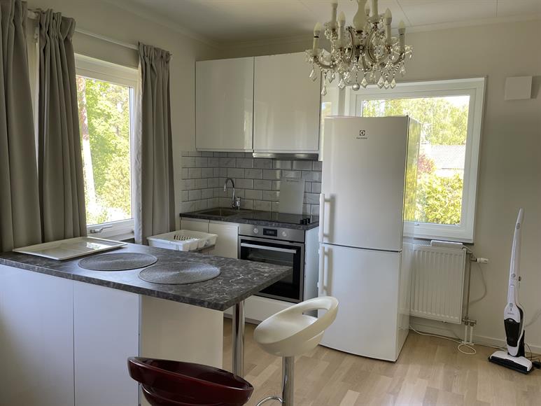 Fräsch och ljus lägenhet uthyres i nybyggd villa i Lahäll, Täby. Välkommen att hyra vår lägenhet, del av en villa med egen ingång, på ca 50 kvm. Lägenheten är möblerad och har en öppen planlösning med vardagsrum och fullt utrustat kök och matplats, ett sovrum, badrum inklusive tvättmaskin. Entrée och bevaring finns på nedreplan. Uteplats och parkeringsmöjlighet utanför huset. Lägenheten är belägen i ett lugnt villaområde nära natur, med gångavstånd till Roslagsbanan ( Enebyberg station) och buss till Täby C/ Mörby C/Danderyd ( Lahällsviadukten). OBS! Boendet hyrs endast till 1 person.