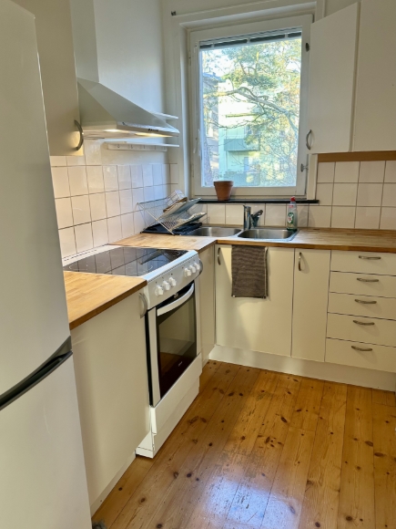 Tvåa 41,5 kvm i Traneberg med både sovrum och balkong mot skogsområde. Lugnt och trevligt kvarter, inte mycket trafik. Gavellägenhet högst upp i huset med fönster i 3 väderstreck. Goda kommunikationer med tunnelbana, tvärbana och bussar från Alvik. 12 minuter med tunnelbana in till T-Centralen. Bostaden hyrs ut i ett år med chans till förlängning.
