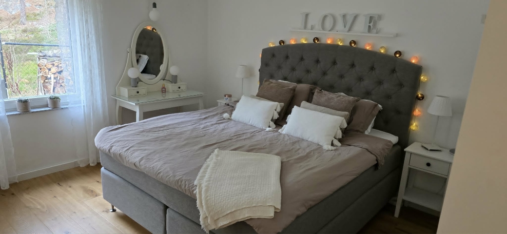 En modern villa nära natur och hav, ca 3 km från centrum av Västervik. Bilparkering sker på grusplanen utanför staketet. Förrådet får endast användas som förråd. Fiber finns indraget, men internet ingår ej. Vedeldad badtunna finns. Hyran är kallhyra, driftskostnad ca 3000 kr/månaden för el/vatten/sopor tillkommer. Dubbelgaraget ingår ej i uthyrningen.