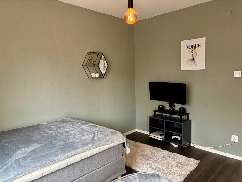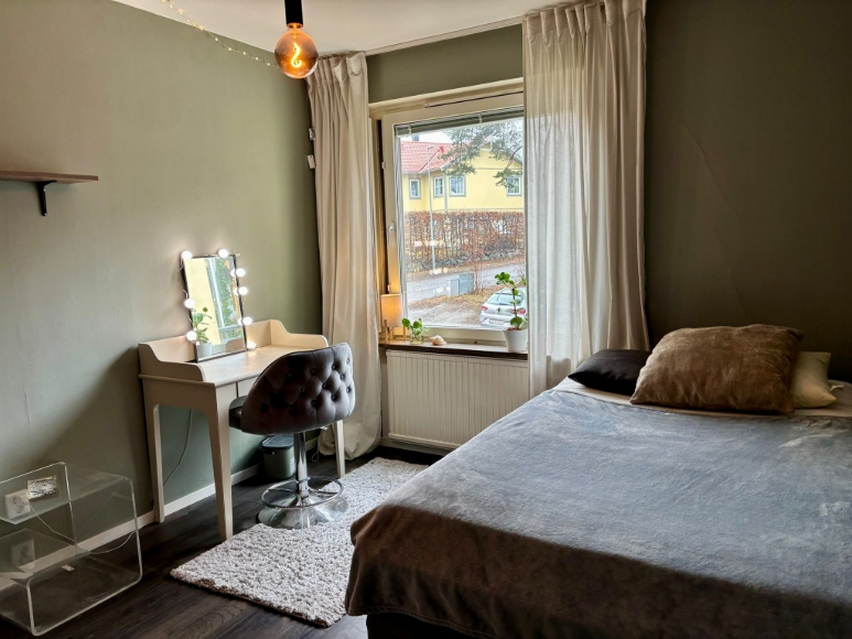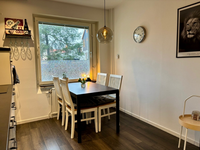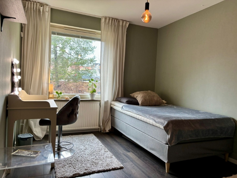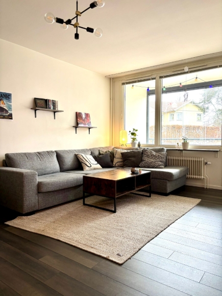 En 2,5-rummare – kök, ett stort sovrum och vardagsrum med inbyggd sovalkov. Inglasad balkong med kvällssol. Fin och fräsch lägenhet, genomgående mörka golv, lättstädat. Tv och bredband ingår i hyran. Uthyres möblerat. Köket är i princip fullt utrustat. Strykjärn, tvättmaskin, hårfön, TV, handdukar och lakan etc finns. Lägenheten hyrs ut så snabbt vi hittat en lämplig hyresgäst som blir godkänd av föreningen. Uthyres 1 år utan möjlighet till förlängning. 200 meter till närmaste busshållplats, bussen tar ca 20 min till slussen. Kostnadsfri parkering finns i området. Har ni frågor är det bara att höra av sig.