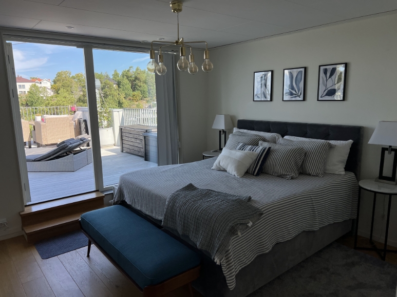Vi hyr ut vårt fina hus i lugna Kolvik, Värmdö, med havsutsikt över Stockholms skärgård. 📅 Uthyrning: 6 december 2025 – 1 juli 2026 (möjlighet till förlängning). Huset hyrs ut fullt möblerat med det mesta man kan önska: 4 sovrum, 3 badrum, bastu och eldstad, fördelade på tre våningsplan med tillhörande terrasser och balkong. Här bor du naturnära i ett lugnt område med närhet till kommunikationer, mataffär, restauranger, gym samt gångavstånd till badplats, natur och Värmdövallens motionsspår. Mer information: 📍 Läge & kommunikationer Huset ligger naturnära och du tar dig enkelt till Slussen på 35–40 minuter med buss eller båt från Ålstäket. Expressbussar avgår på morgonen. 🛒 Gångavstånd till mataffär och restauranger. Flera köpcentrum finns 5–10 minuter bort med bil eller buss. 🏡 Om bostaden • 148 m², 4 sovrum (två med höj- och sänkbara skrivbord) • 3 badrum, varav ett med bastu • Fantastisk utsikt över skärgården • Rymliga terrasser, balkong och grönskande trädgård • ✅ El, uppvärmning och vatten (normalförbrukning) ingår i hyran • ✅ Wi-Fi ingår • 🔋 Ladduttag för elbil finns Huset är perfekt för både avkoppling och arbete hemifrån, med två separata kontor utrustade med stora HP-skärmar och höj- och sänkbara skrivbord. 🚭 Rökning inomhus är ej tillåten 🐾 Inga husdjur 🛏 Våningsfördelning: • 3:e våningen: Sovrum med dubbelsäng, takterrass, Kamado-grill, badrum och bastu • 2:a våningen: Sovrum med enkelsäng, vardagsrum, kök, eldstad, badrum, kontor, balkong • 1:a våningen: Två sovrum (ett med dubbelsäng och ett med enkelsäng), kontor, badrum, trädgård/terrass 📅 Hyresperiod: 6 december 2025 – 1 juli 2026. ➡️ Möjlighet till förlängning finns.