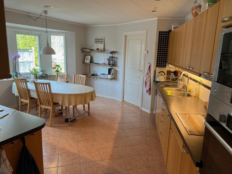 ljust, öppet och rymligt hus, Naturnära familjevänligt och otrafikerat förskola, skola matbutik och bra kommunikationer. 7 rum varav 5 sovrum. 177 kvm.