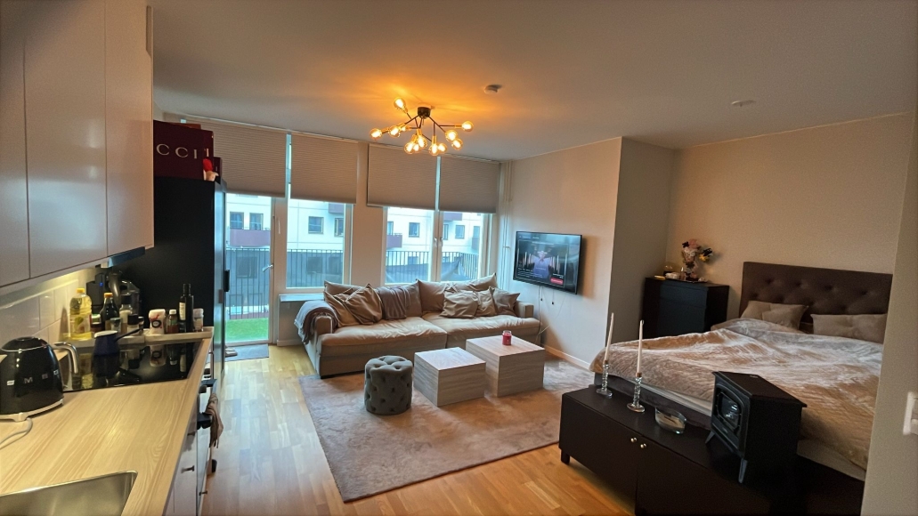 ► Nyproducerat (2019) ► Optimal planlösning ► Centralt läge ► Yteffektiv med stora social ytor ► Rymlig balkong Bostädernas väggar är målade med ljus nyans med golv i klassisk ekparkett. Snyggt och funktionellt kök med bra förvaring med praktisk och lättskött bänkskiva i ljus laminat. De energieffektiva vitvarorna är från Electrolux. I möbelväg finns det mesta, men ingen säng. I BRF Terra har du ICA butiken i området och ett stort utbud av butiker, restauranger, mysiga caféer, gym, klättercenter och en lokalbiograf i närheten. Med tunnelbanan tar man sig till Söders höjder på ca 10 minuter och för dig som föredrar att cykla finns det fina cykelvägar som tar dig in till stan eller andra delar av Stockholm.