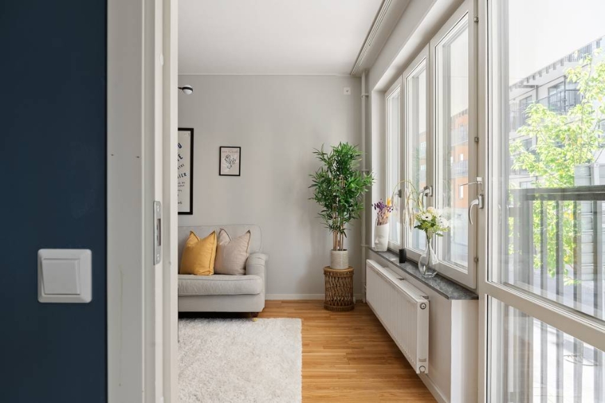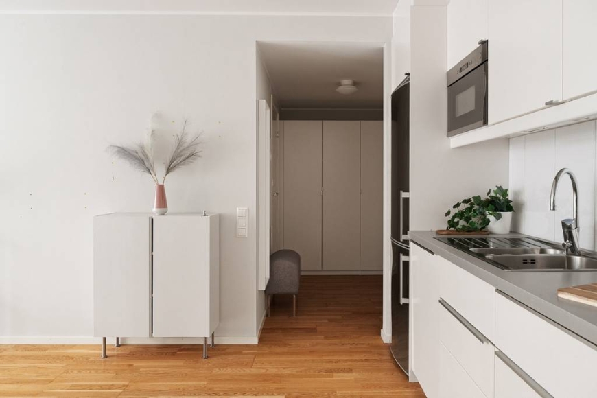 Välkommen till denna lägenhet som idag är en tvåa. Här är det bara att flytta in i ett hem där du inte behöver göra någonting annat än att ställa in dina favoritmöbler. Denna lägenhet med en generös uteplats i soligt söderläge med plats för loungegrupp. Uteplatsen ligger insynsskyddat från vägen, i en grönskande omgivning. Här råder modernitet i både kvalitet och design. Här erbjuds en stilren interiör med genomgående parkettgolv, ljust målade väggar och ett smakfullt inrett badrum med golvvärme. Vardagsrum med akustikpanel på en av väggarna som ger ett dämpande ljud och modernt intryck. Det exklusiva köket från Ballingslöv går i en grå ton med vitvaror i rostfritt från Siemens. Bra med förvaring, goda arbetsytor och utgång till den grönskande uteplatsen bjuder in till både matglädje och umgänge. Sovrum med garderober vilka sträcker sig hela ena sidan som lätt nås via skjutdörrar. Förrådet finns i lägenheten.
