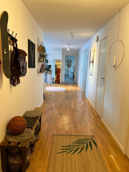 Letar du efter en bekväm vinter och stilrent hem för? Här finns chansen att hyra en rymlig och smakfullt inredd lägenhet på 105 kvm mitt i Kungsbacka centrum – perfekt för dig som vill bo nära allt! Lägenheten har en öppen planlösning mellan vardagsrum och kök, tre sovrum (ett omgjort till kontor), klädkammare, badrum och separat toalett. Den är fullt möblerad och inflyttningsklar, utrustad med TV, Apple TV, diskmaskin, tvättmaskin, torktumlare och allt köksgeråd du behöver – det är bara att flytta in! Här bor du mitt i stan, bara fyra minuter från stationen, nära butiker, restauranger, gym och mataffärer. Kungsmässan ligger på gångavstånd och Hede Outlet när du på några minuter med bil. Gatuparkering finns. Vi hyr ut lägenheten då vi reser till Brasilien i cirka fem månader och återvänder i slutet av april 2026. Ett perfekt hem för dig som vill bo centralt med, stil och en mysig atmosfär under vintern i Kungsbacka!