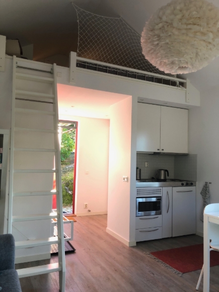 Attefallshus på 25 kvm plus sovloft i trevliga och natursköna Lännersta/Boo gård. Bostaden består av en hall med garderober, ett allrum med ett minikök utrustat med diskbänk, spis med två plattor, mikrovågsugn samt kylskåp med frysfack samt ett badrum med wc, dusch och tvättmaskin. Det finns också ett sovloft. Bostaden är möblerad och har bland annat en bäddsoffa, matbord med fyra stolar samt vägg-tv. Utanför bostaden finns tillgång till egen uteplats samt parkeringsplats. Allmänna kommunikationer, till Slussen och övriga Nacka, 550 meter från bostaden. I hyran ingår el, vatten och bredband.