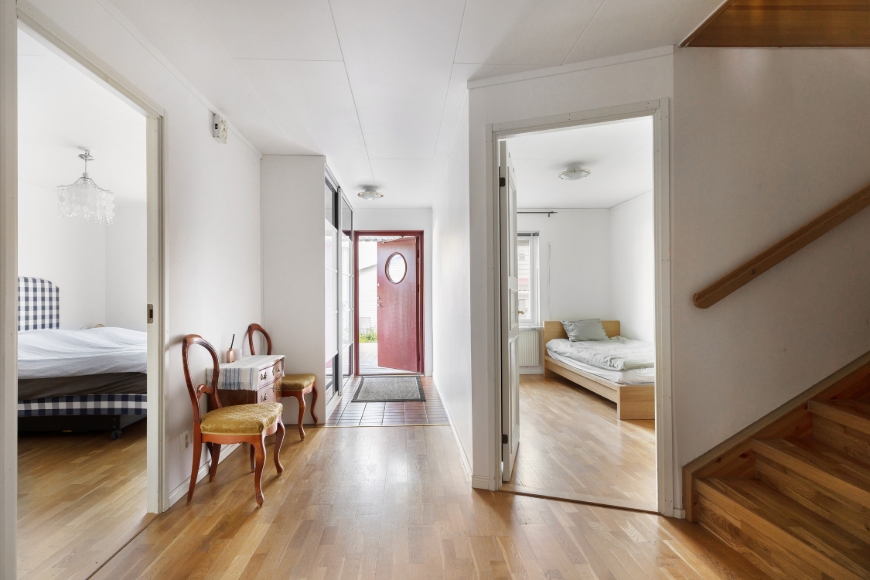 Fint radhus i Gribbylund, Täby. Förskola och F-6 skola ett stenkast bort. Mataffärer och bra kommunikationer i närområdet. Radhuset är 2 våningar på entreplan finner du 2 sovrum , stort badrum och tvättstuga belägna på och på övervåningen finnes 1 sovrum, vardagsrum, kök, toa med dusch och solig uteplats mot grönskande skog. Två parkeringsplatser finns tillgängliga, en på framsidan av huset samt en vid ett garage. Själva garaget ingår dock inte. Vi har bott i huset i över 25 år och älskar området men nu är det dags för pension så då kommer vi bo på annan ort och vill därför hyra ut vårt älskade hem. Uthyres fullt möblerad. Internet/elavtal tecknas av hyresgäst. Långtidsuthyrning prioriteras. Om bostaden Byggnaden byggdes år 1988. Renoveringar Köket är renoverat (5-10 år) Badrummet är renoverat (5-10 år)
