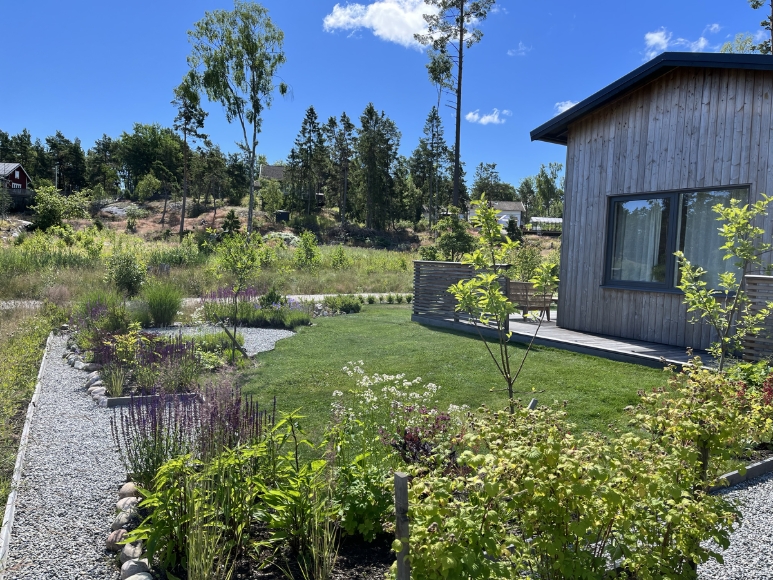 Charmig möblerad minivilla med trädgård i Stavsnäs Modern, fullt möblerad minivilla i lugnt och naturskönt område. Boendet har golvvärme, luftvärmepump med AC, tvättmaskin och torktumlare, allrum med matplats, sovrum samt loft med gott om förvaring. Stor altan runt huset med markis och lummig trädgård – perfekt för avkoppling eller utomhusmåltider. Läge: 50 minuter till Slussen med bil eller kollektivtrafik. Gångavstånd till ICA, busshållplats, färjeläge till skärgården, hav och insjöar samt lokalt bageri.