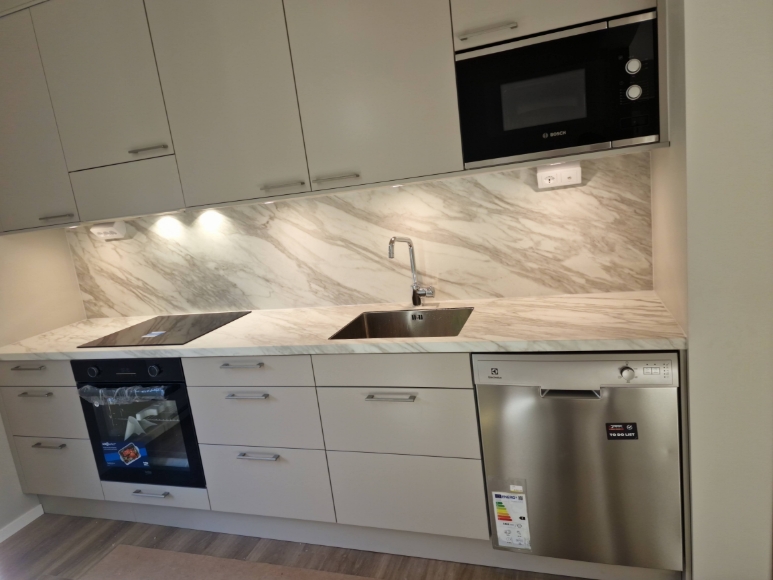 5 rok a 90 kvm: Fördelat på 4 sovrum, vardagsrum och kök, 2 badrum samt en underbar balkong, uteplats med vidsträckt utsikt väntar denna pärla. Lägenheten är total renoverad. 2 Badrum med kakel och klinkers, i 1 av badrummen finns en tvättmaskin och en torktumlare. Det höga läget lovar rikliga ljusinsläpp. Passar till den stora familjen eeler som företags bostad.