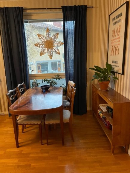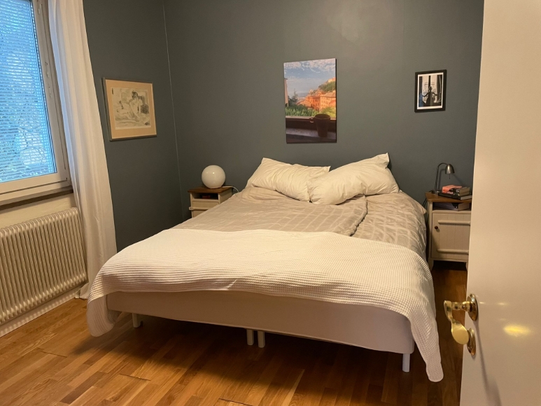 Trerummare i Sollentuna, Häggvik. Vackert belägen lägenhet i närheten av Häggviks handelsplats och pendeltågsstation. Fullt möblerad och med köksutrustning/porslin för grundläggande matlagning. Balkong i sydvästläge. Parkeringsplats i inhägnat område. Internet, tv (enklare modell) ljudanläggning. Tvättmaskin finns i lägenheten, dessutom finns större tvättstuga i föreningen med flera tvättmaskiner, torktumlare och torkskåp. Mysig innergård med sittplatser, odlingslådor och grillmöjligheter. Park med stor lekplats finns intill och hunddagis finns i grannporten. Hyrs ut under 6 månader med möjlighet till förlängning.