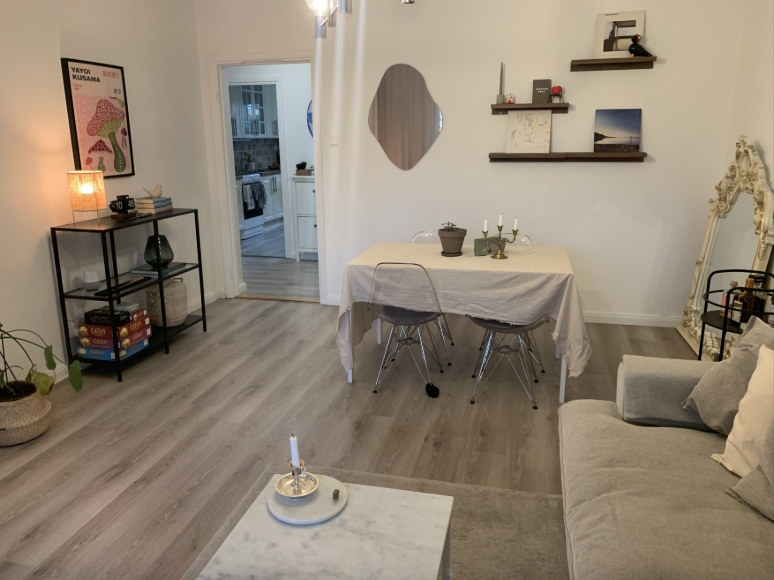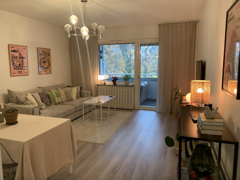 Ljus och trivsam 2:a på 53 m² i stillsamt läge, fullt möblerad och med inglasad balkong mot lugn innergård. Nära Mälaren (ca 500 m), matbutik, buss. Parkering med eluttag för motorvärmare finns tillgängligt..