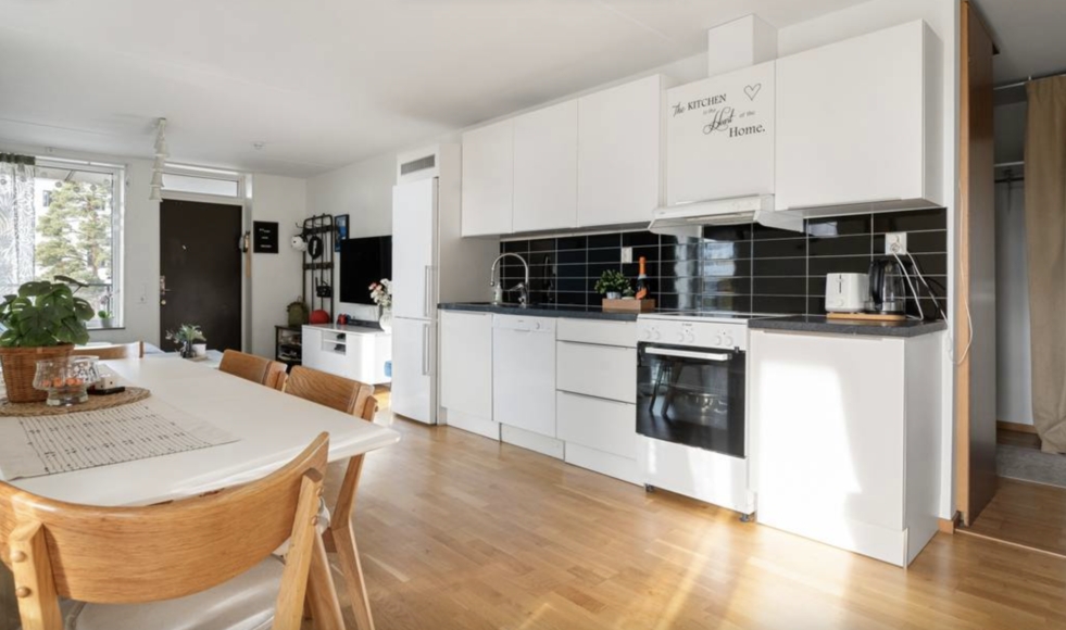 Välkommen till ett hem utöver det vanliga – en ljus och välplanerad gavel 3:a på attraktiva Kungssätravägen 18, med två balkonger ca 33 kvm (varav den mindre är inglasad) som förlänger boendets sociala ytor och erbjuder härlig livskvalitet året runt. Här bor du högt upp med generösa utomhusytor och en planlösning som både känns luftig och funktionell. Redan i entréhallen möts du av en välkomnande atmosfär med plats för avhängning. Vidare in öppnar bostaden upp sig mot ett ljust och stilrent kök med vita luckor, svart kakel och full maskinell utrustning – inklusive diskmaskin och kyl/frys. Här finns utrymme för ett större matbord med plats för 4–6 personer, perfekt för middagar med familj och vänner. I anslutning ligger det rymliga vardagsrummet i öppen planlösning, där stora fönsterpartier och utgång till balkongen släpper in rikligt med ljus. Balkongen sträcker sig längs hela lägenheten och blir som ett extra vardagsrum under sommarhalvåret – högt, fritt och med solchanser stora delar av dagen. Bostaden erbjuder två väl tilltagna sovrum med plats för dubbelsäng. Det första sovrummet har direkt tillgång till den stora balkongen, medan det andra bjuder på en lyxig extra fördel – en inglasad balkong som kan nyttjas året runt. Det helkaklade badrummet är funktionellt utrustat med duschhörna, ny tvättmaskin (2025), handdukstork och god förvaring – allt för att förenkla din vardag. Det här är en bostad som kombinerar komfort, stil och maximalt utnyttjande av både inne- och uteytor. Som extra guldkant på boendet erbjuder föreningen en exklusiv takterrass högst upp i huset – utrustad med bubbelpool och milsvid utsikt. En stor 2:a som idag är ombyggd till en modern 3:a. Husets byggnad blev klart år 2014 och vart då en av de nominerade till "snyggast design" i Stockholm. Det är 5 minuters gångväg till den populära Sätradalsparken där man kan vara med familjen hela dagen med både en vattenbassäng (som är fylld sommartid) samt stora lekområden. Endast 3 minuters promenad till Sätra centrum. Välkommen!