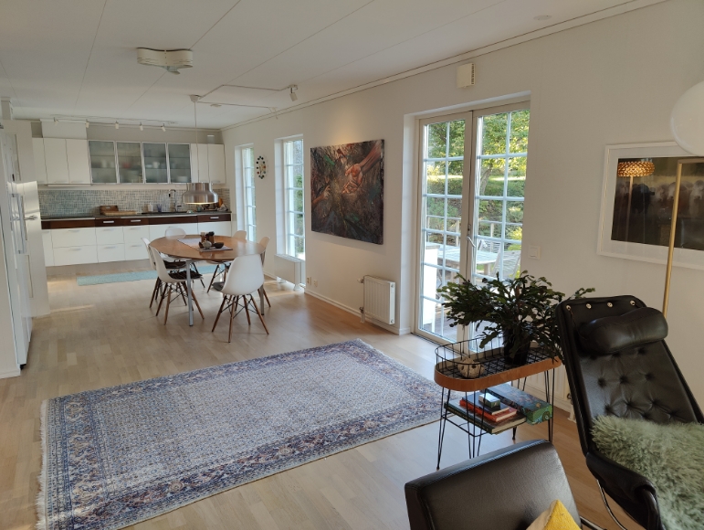 Villa byggd 2003 i 1,5 plan. Nära till naturen, bad, skolor, affär och pendeltåg (Aspedalens station). Naturskönt läge med 1200 m2 tomt med utsikt över Aspen. Bra för en barnfamilj. Uthyres möblerad.