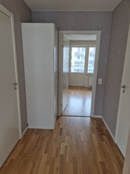 Jag hyr ut min ljusa och mycket trivsamma 2 RoK på tredje våningen i ett modernt hus från 2012. Lägenheten ligger endast 8 minuters promenad från Fruängen centrum och ca 22 minuter till T-Centralen. Bostaden har öppen planlösning, stora fönster med fint ljusinsläpp och ekparkett i hela lägenheten. Köket är utrustat med varmluftsugn samt kombinerad kyl/frys och badrummet är stort och rymligt. Här finns även bra förvaring med en större klädkammare. Det finns dessutom en mindre klädkammare med fönster som dock inte ingår i uthyrningen. Kallhyra tillämpas, vilket innebär att vatten och el betalas efter egen förbrukning. I huset finns tvättstuga, cykelrum och grovsoprum. Lugnt och trevligt område nära både natur, service och goda kommunikationer.